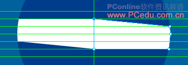 13、參照上一步的操作方法,將右側白色圖形的左上角的路徑節點移動到與水平方向的第2條輔助線相交。