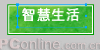 在“層”面板中新建一個圖層——“層2”。然後用“文本”工具在畫布上輸入相關網站或論壇的名稱。在這裡我輸入的是“智慧生活”,字體為15號的加粗黑體,色值為# FFFFFF,使用“勻邊消除鋸齒”。最後使該文本對象保持與畫布垂直對齊。如圖06。