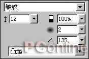 然後選中文字對象並在下方的屬性框中將這一文字對象的字體改為加粗的"華文新魏",字號為96,填充色為#FF0000。其它的各項設置則不變。接著我們在屬性框右側的"效果"欄中為這個對象先添加一個"內斜角"特效,其中各項設置如圖01。
