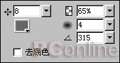 圖01 然後再來添加一個"色相/飽和度"特效,其中色相值為:53、飽和度為:63、亮度值為:-19。最後,為了更好的體現金屬字的立體感,我們再為它添加一個投影值為#666666的"投影"特效,各項設置如圖03。