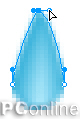 我們再來畫一個汗滴。先畫一個13*13大小的圓,采用“輪廓”漸變填充,色彩值為# BDEFFF至# 2EADD8,取消描邊色,並為其添加一個“進一步模糊”的特效。然後用“部分選擇”工具將該圓上端的節點選中,使用方向鍵向上移動12像素的距離。為使汗滴的上端更加尖銳,我們用“部分選擇”工具將上端節點的兩條控制手柄進行縮小,如圖22。然後調整填充手柄的角度,如圖23。從而使汗滴的反光更加自然。
