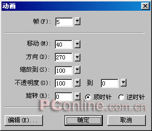 然後選中“汗滴”對象,再點擊“修改—動畫—選擇動畫”命令。此時會彈出一個動畫元件的設置窗口,我們在該窗口中輸入如圖25般的相關數值。