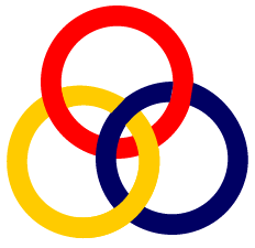 3、選中藍色的圓環對象, 單擊工具欄上的合並按鈕 這樣就將自動圖形對象轉化為了路徑對象,具體效果如下圖所示。