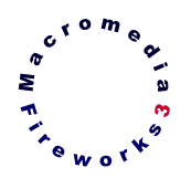 有時候可能需要做一些圓形文字的環繞,類似於左邊的文字。其實這類文字實際上就是一種文字環繞路徑的效果,不過只簡單的通過Attach to Path功能是無法實現這種效果的,仔細地觀察一下:環繞路徑的文字的上半部和下半部實際上方向相反,所以光使用Fireworks3提供的文字環繞路徑功能無法一次性實現類似的效果,其中還需要一些小技巧。:)