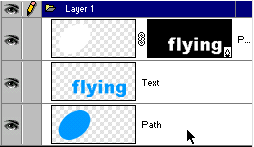 第四、 選中一個文字層, "edit-->cut" (快捷鍵 ctrl+x ),然後選中白色的橢圓,點選菜單項的 "edit-->paste as mask" ,效果是不是出來了?沒有?呵呵,你需要再調整一下各層的順序,看看左圖各層的排列,調整後,是不是已經出現我們需要的效果圖了……