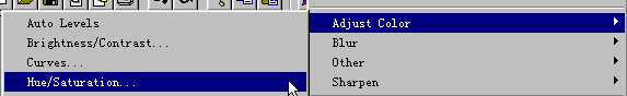 2.在畫布中選位圖圖形,選擇菜單Xtras->Adjust Color->Hue/Salution(************->調整色彩->色調/飽和度).