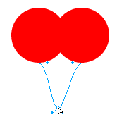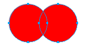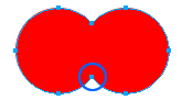 1.1 用橢圓工具畫出一個正圓,然後clone它,將clone後的圓向右移動,調整位置如圖1.1所示。為了力求使得兩個圓保持水平,我們可以使用"align"(對齊)工具,(modify-->align-->center horizontal)讓他們保持水平對齊。接下來,同時選中兩個圓,選擇菜單項的"modify --> combine --> punch"命令,這時候,應該如下圖1.2所示: