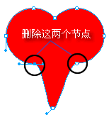 1.3 還是用超級選擇工具,點中如下圖3.1所示的兩個節點,此刻心型圖已經形成了,如下圖3.2所示:
