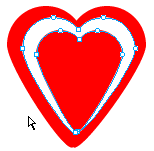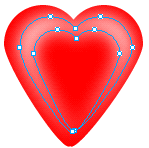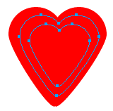 2、1選中心型,然後clone它,接著把clone後的心型,縮小相應的比例,選中縮小的心型,clone它,接下來還是繼續縮小clone後的心型。這樣,我們一共有三個心型。(三個心型的大小對比我們可以看下圖4、1所示)。好了,接著我們還要繼續美化一下,點中最後clone的心型的最下端的節點,向下拖動,直到如下圖4、2所示的樣子為止。