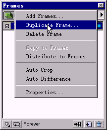 第五步、打開Frames(桢)面板,點擊右上角的彈出菜單按鈕,在彈出的下拉菜單中,選擇Duplicate Frame(復制當前桢)命令,如圖05所示: