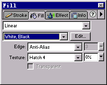 6、在選定文本對象的前提下,打開Fill(填充)面板,點擊顏色填充方案右側的“Edit”按鈕,在彈出的顏色編輯列上進行編輯。顏色列的顏色現在應該只有黑色和白色兩種顏色,而且均位於顏色列的兩端,如下圖所示: