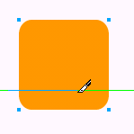 3、選定圓角矩形對象,然後選取工具箱的Knife工具,沿著輔助線水平方向對圓角矩形進行切割,如下圖所示: