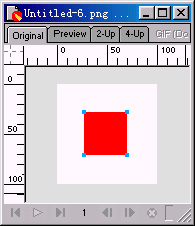 2、選取工具箱的矩形繪制工具,配合Shift鍵,在編輯區繪制出一個正方形。填充顏色隨意,只要和背景色不相同即可,這裡采用的顏色為紅色;不要描邊,大小、位置如下圖所示: