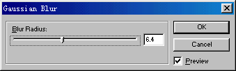 8、選中調整完成後的對象,打開Effect(效果)面板,執行其中的"Blur and Glow--Gaussian Blur(模糊和暈光--高斯模糊)"效果命令,在彈出的高斯模糊設置對話框中,將數值設為6.4(請注意,數值不要設置的過大,通過後面的操作相信你會明白原因的),具體設置請參看下圖: