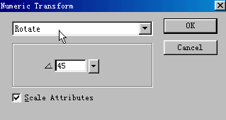 4、選中這個镂空正方形,Modify>Transform>Numeric Transform,在彈出的對話框中如下圖設置。