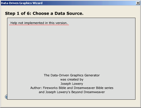 動態數據圖象向導(The Data-driven Graphics Wizard) Fireworks終於也引入這一先進理念了,使用這一功能設計師在制作大量重復和類似的工作時可以節省大量的時間。所謂動態數據圖象就是允許用戶先創建一個模版文件,然後可以對這個文件中的各種圖象文字等對象賦值,使這些對象成為變量,然後用相應的值代入自動產生大批類似的文件。