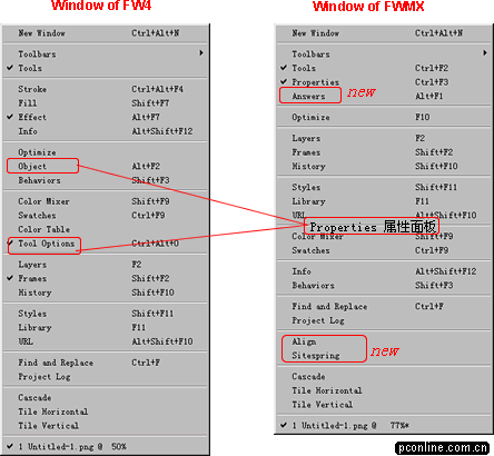 最大一個變化就是FWMX將在FW4中存在的Tool Options(工具選項)以及 Object(對象)兩個浮動面板全部整合到了PropertIEs(屬性面板)中了,這個變化是否是一個對操作過程的簡化或者說優化,我們可以通過隨後的文章得到答案,請大家關注。