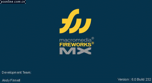 FWMX給我們最大的感受是視覺上帶來的強烈的沖擊,當然還有一些更加人性化、快捷化工具的設置。我們知道,MM公司基本上是在相同的時間同時推出了Flash、DW、FW的MX版本,自然追求了風格的統一和完美,相關圖標及其相關的啟動畫面,還有風格統一的屬性面板,可拆分重組的面板窗口無一不給我們更舒適的視覺感受,說來說去,我們還是先一起來看看FWMX的啟動界面吧!