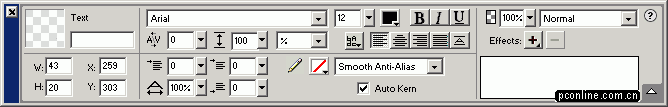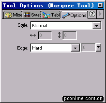 PS。有人也許要問,我們在FW4中用來設定工具選項的Options面板(如下)跑到哪裡去了?呵呵,在這點的設置上,同樣顯示了FWMX為了操作更加方便而做的改進,代替Options選項面板的就是PropertIEs(屬性)面板(如下下)了,該面板會自動隨著你選擇工具的不同而進行相應的變化,使用過DW的朋友對於這個面板應該是一點兒都不陌生的,屬性面板的出現的確是讓很多人為她叫好了,呵呵~~看來進步的東西總是會博得人們的好感的。