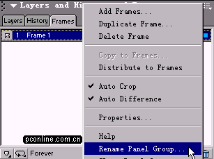 A、我們可以單擊有上角的彈出菜單按鈕,在彈出的菜單中選擇Rename Panel Group 重命名面板組 命令(通過名稱我們可以知道,重命名的面板一定要是多個面板的組合才行,不然是無法進行操作的);
