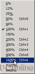 4、單擊編輯區狀態欄上的視圖比例切換按鈕,將視圖比例設為“1600%”,當然,通過按“Ctrl+6”組合鍵,也同樣可以達到視圖切換的效果。具體操作可以看下圖示范:
