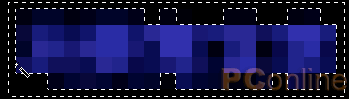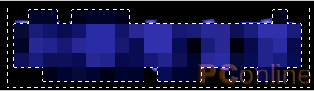 6、按“Ctrl+1”組合鍵,將編輯區視圖切換到“100%”視圖狀態。按“Ctrl+V”組合鍵,將剛剛“截屏”的圖片粘貼到編輯區,拖動粘貼的圖片,使得馬賽克區域能夠覆蓋住第2步操作中輸入的文本對象。為了便於後面的操作,選取工具箱的“選取框”工具,將粘貼圖片的馬賽克區域全部圈選中,然後按“Ctrl+Shift+I”組合鍵,將圈選區域反選,然後按鍵盤上的“Delete”鍵,將反選部分刪除掉,此刻編輯區效果請看下圖: