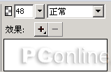 9、還是選中位於上層的位圖對象,在屬性面板上的效果區域進行調解。圖層的混合模式保持“正常”不變,將不透明度的數值做一個調整,此處設為了“48”。具體設置請參看下圖。