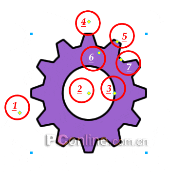 原來我們為了實現一種齒輪效果,又要聯合路徑,又要對路徑對象打孔,呵呵,總之是很麻煩,現在我們不需要這麼麻煩了,因為我們有了Cog(齒輪)組工具,只需要用鼠標把它拖動到編輯區即可了,剩下的工作也是用鼠標來調整完成即可了!是不是很簡單?好了,我們先看看齒輪組工具制作的效果圖: