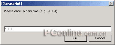 對話框給我們的提示已經很清楚了,直接在文本框內輸入新的時間,然後單擊OK按鈕,看看鐘表的時針、分針是不是按照你輸入的時間來顯示排列的啊?這個功能很有意思,MM公司現在在對產品的開放性的研發上可以說是煞費苦心啊!、通過圖形來和JS掛鉤,真是很棒的思路!佩服佩服!