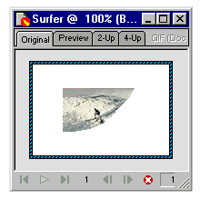 Fireworks 的文件窗口上有四個標簽,可以同時編輯和預覽圖象,你可以同時預覽四種不同的優化設定所產生的效果,選擇最理想的一種設定。