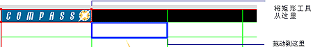 3、將矩形工具(Rectangle tool)指針貼近輔助線(Guides)矩形區域的一個角,按下鼠標並拖動到對角上。