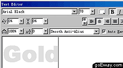 二、 使用工具欄中的文字工具,在彈出的text editor面板中進行如下設置,鍵入文字Gold。