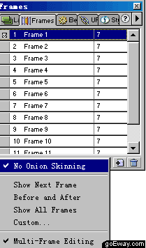 十五、在Frame面板中,取消顯示全部的幀,你只需要選擇No Onion Skinning就可以了。
