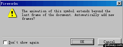 九、在fireworks4的警告窗口中點擊OK按鈕。這時Fireworks會自動幫你生成一系列的幀,使動畫順利完成。