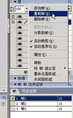 5. 復制第1幀,在第1幀之後,這時創建了第2幀。