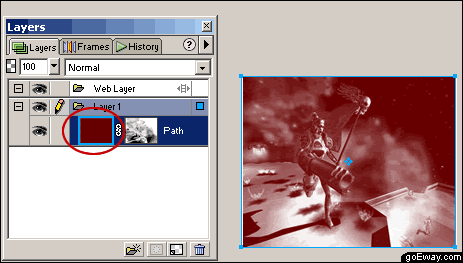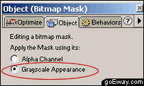 六、 選中二個圖形,用菜單命令(modify->mask->group as mask)對二個圖形進行遮照。確定object面板選項為: