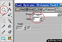 一、新建文件,在工具欄中選擇多邊形工具,雙擊,在其tool option面板中進行如下設置。