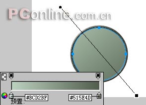 新建一個分辯率為72,300*200大小的白色畫布。然後我們先來畫錢幣的外邊緣。用“橢圓形”工具畫兩個大小分別為116*116和107*107的圓,然後將兩個圓形同時選中後進行“垂直”和“水平”對齊。接著使用“修改—組合路徑—打孔”選項,把兩圓合成一個組合對象。然後再為該對象使用#414941的無描邊實心填充,如圖01。