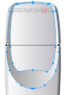 我們再來畫手機的顯示屏外圍的部分。之所以先畫這一部分,是為了給以後的顯示屏勾畫帶來位置上的坐標參考。