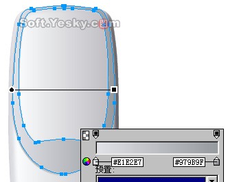 再用鋼筆工具畫如下圖般的對稱路徑,也用線性漸變加以填充,漸變色由#B7BBC6至#E0E1E6,如圖11。