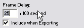 在Frame and History面板上雙擊Frame 1,將時間間隔調整為25毫秒(如圖16),並且用同樣的方法調整所有Frame 的時間間隔。