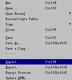 在打開的Import對話框中選擇我們在Fireworks MX制作下拉菜單一文中輸出的已經進行了切割處理的Htm文件(如圖3)。