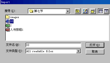 打開Fireworks MX,先新建一個圖形文件,文件的尺寸不妨設置得大一點,比如700*700。然後使用菜單命令File-Import,打開Import對話框(如圖2)。