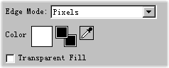 在功能界面下方的edge mode下拉框中選擇pixels項,這是選擇以什麼方式進行邊緣填充。Color功能控制使用什麼顏色對邊緣進行填充,不用進行修改,我們就使用默認的白色。如果你在transparent Fill前的選擇框打上勾,就將以透明色進行填充(如圖5)。