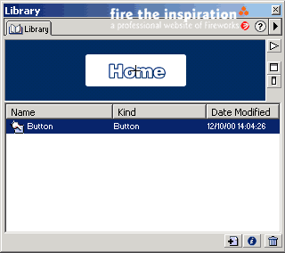 選擇Window->Library打開Library面版,你可以看到剛才所創建的這個按鈕,在Library面版中雙擊這個按鈕可以再次打開按鈕編輯器對按鈕進行編輯。