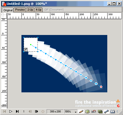剛才我們已經創建了一個動畫,如果以傳統的方法來實現這個效果所需要花費的工夫簡直難以想象,現在Fireworks都為你做好了。現在我們來看一下Frames面版,選擇Window->Frames打開它。