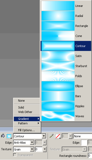 進入Fireworks MX 2004,你會發現矢量圖形繪制工具強大了很多。而繪制圖形後的矢量填充設置也有了更形象化的改進。