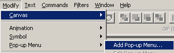 在左上角用文字工具寫上了菜單的連接位置,選中,轉換成slice切片,點擊modify>pop-up menu>add pop-uo menu開始建立一個pop菜單。
