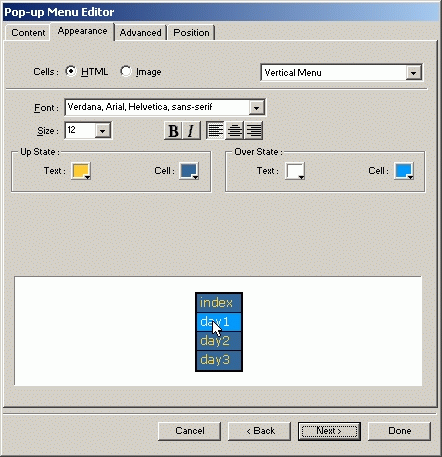 fwmx在網頁制作上的進步其實很大的。比如reconstitute table就是個很不錯的方便功能,但是千萬別把它作為抄襲的工具(當然也不是所有的葉子都能抄襲的);pop菜單用fwmx做起來也很方便,但是還存在著定位的問題,需要手動改改代碼。畢竟Fireworks不是真正的網頁制作工具,只是一個輔助工具。