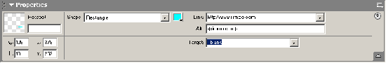 接著在圖片的右下角寫上我的網站的地址,選中,將其作成一個hotspot,在propertIEs面板中填好網站連接地址、注釋等等。